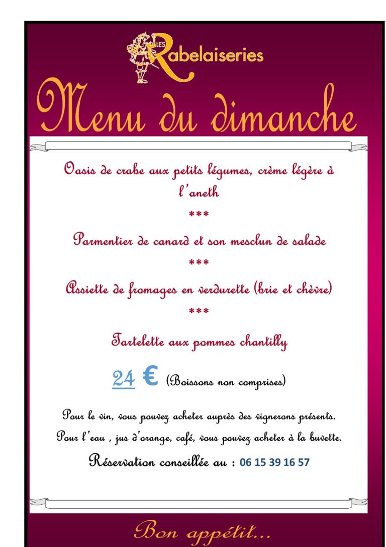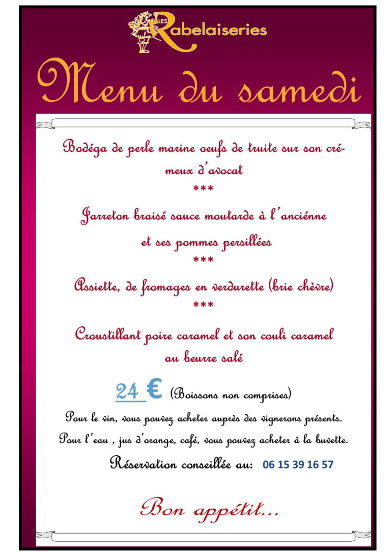 Possibilité de restauration sur place le samedi midi et le dimanche midi.